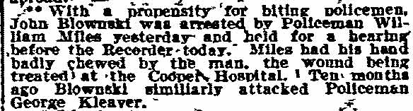 GEORGE KLEAVER DIES, VET CAMDEN POLICEMAN Suffering a sudden heart attack as he left his home to report for duty, George W. Kleaver, 50 years old, 515 Pine Street, acting desk sergeant at police headquarters, dropped dead last night. Kleaver had been a member of Camden’s police force for twenty-six years. As a patrolman he was connected to the Second District and enjoyed a wide acquaintance in South Camden. He suffered a heart attack several weeks ago, but recovered sufficiently to attend to his duties. Last night Kleaver collapsed on the pavement outside his home. When members of his family were summoned and carried him into the house he was dead. The deceased leaves his widow Mrs. Annie Kleaver and one son, George W. Kleaver Jr. |