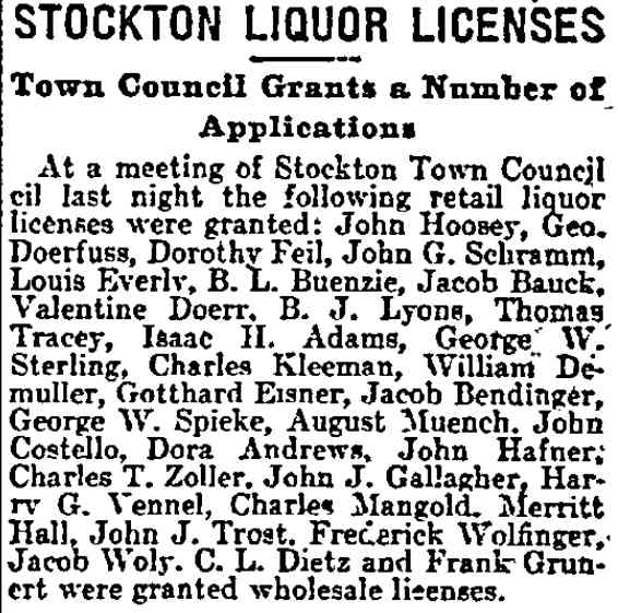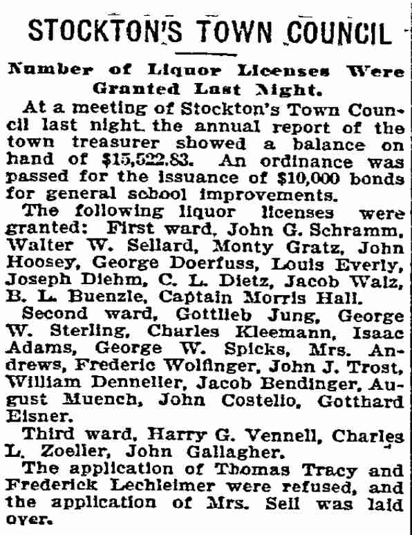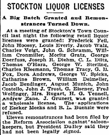 Frederick Feil - John Hoosey Louis Everly - ,Jacob Walz Charles Voigt - John G. Schramm William Cronmiller - Moritz Gratz George Doerfuss Joseph R. Diehm C.L. Dietz - Thomas O'Hara George W. Sterling Charles Kleeman - Thomas Tracy G.B. Fox - Dora Andrews George W. Spicks Catherine Brown William Denneller Jacob Bendinger August Muench - John Costello John J. Trost - G. EIsener Fred Wolfinger - Mrs. Rugart Harry G. Vennell - Andrew Zane J. Grunert Eseker Meeks Burkhardt L. Buenzle |