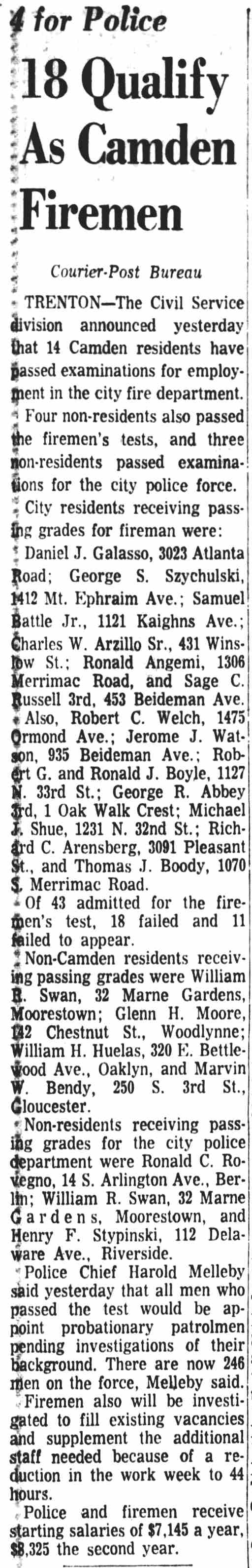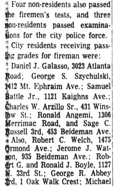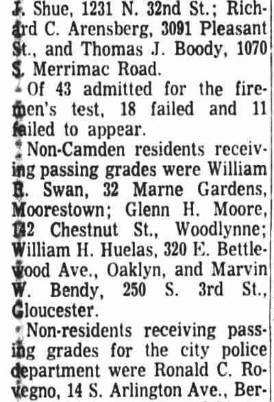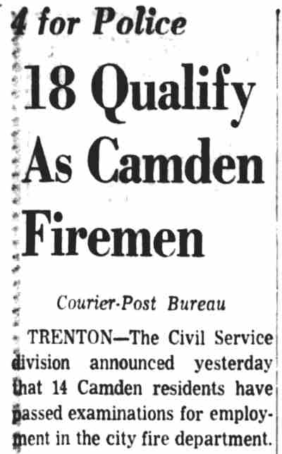 GLENN H. MOORE was born on June 26, 1945. He was appointed to the Camden Fire Department on November 8, 1968. After Camden lifted its residency requirements for police and fire personnel, Glenn H. Moore moved to the Hilltop section of Gloucester Township. He served with Engine Company 11 in Cramer Hill during the 1990s. Glenn H. Moore retired fro the Fire Department on January 1, 2000. Glenn H. Moore passed away on October 24, 2011. |