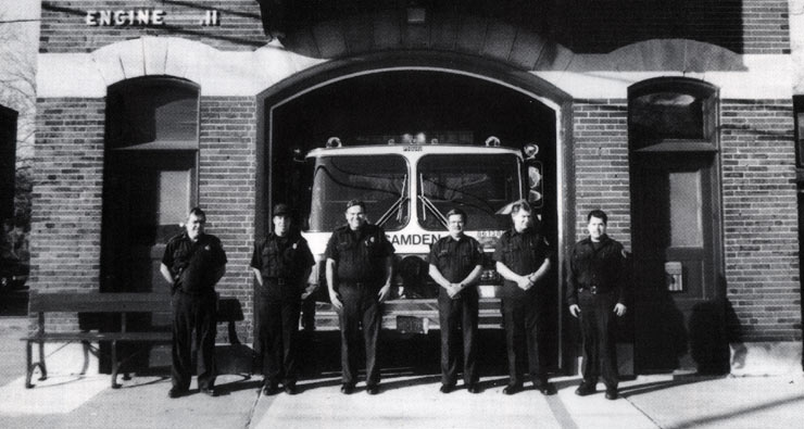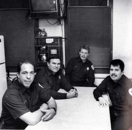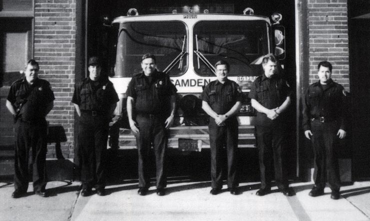 Front, from left: retirees Capt. Edwin Robbins, Captain Leonard Garbrecht, and Theodore "Teddy O'Brien" Orbaczewski, with active Captain Anthony Winters. Top: Fire Fighters Greg DePetris, Frank Saia, and Glenn Moore |