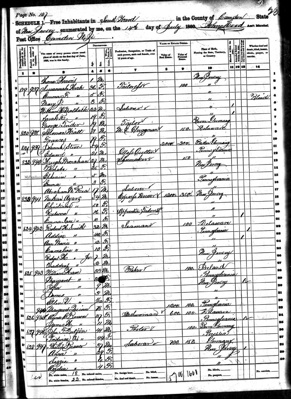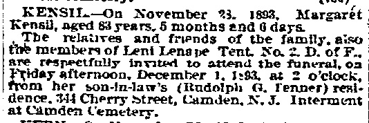 The following is a complete roster of this post for 1886 : Post Commander, Benjamin H. Connelly; Senior Vice-Commander, Adam C. Smith; Junior Vice-Commander, William Haegele; Surgeon, George Pfau; Chaplain, Samuel Gaul; Officer of the Day, Robert Crawford; Officer of the Guard, John D. Cooper; Quartermaster, Samuel J. Fenner; Adjutant, William B. Summers; Sergeant-Major, Stacy H. Bassett; Quartermaster-Sergeant, Otto K. Lockhart. Comrades: Philip Achenbach, George L. Allchin, Isaac Albertson, Joseph Applegate, John W. Barclay, Martin M. Barney, Joseph Baxter, William W. Bennett, Charles L. Bennett, Henry Bickering, Abel Biddle, George K. Biddle, John Bieri, Robert M. Bingham, Socrates T. Bittle, George W. Bittle, Benjamin F. Blizzard, Joseph Borton, Frederick Bowers, Benjamin M. Braker, john Breyer, William H. Brians, Wm. J. Broadwater, William Broadwater, John Brown, Harris Brooks, William H. Brooks, Joseph F. Bryan, Joseph Buddew, J. Q. Burniston, George Burton, Frederick Buser, Thomas L. Bush, William Butcher, Isaac B. Buzby, Edward C. Cattell, Joseph Cameron, James H. Carey, William Carey, James Chadwick, James Chafey, George M. Chester, James D. Chester, Lewis L. Chew, Henry S. Chew, John W. Churn, Andrew B. Cline, Charles Clarke, Samuel J. Cook, Levi E. Cole, John J. Collins, John C. Cooper, John W. Cotner, Thomas L. Conly, Harvey M. Cox, Jason S. Cox, Harris Crane, Charles Cress, Joel G. Cross, O. C. Cunningham, John A. Dall, John Dalby, John H. Damon, Westley Dare, John E. Dawson, Adam T. Dawson, James L. Davis, William Davis, Amos R. Dease, Henry Deford, Lewis F. Derousse, Michael Devinney, Glendora Devo, John Digney, Joseph Dilks, William A. Dobbins, George W. Dunlap, Aaron B. Eacritt, John J. Early, Christopher Ebele, Godfrey Eisenhart, John Elberson, Charles Elwell, Charles Eminecker, John Esler, John H. Evans, Charles S. Fackler, James Fanington, James A. Farraday, John H. Farry, John Faughey, Wm. H. Fenlin, George G. Felton, George W. Ferguson, Charles W. Fish, Israel L. Fish, James Finnan, Samuel B. Fisher, Edward L. Fisher, Ephraim B. Fithian, Jacob T. Fisher, Edward Fitzer, Samuel Flock, Leonard Flor, John Fox, John S. Fox, H. H. Franks, Chas. B. Frazer, Thomas J. Francis, Samuel W. Gahan, Chas. H. Gale, James Galbraith, Thomas Garman, Harry Garren, John W. Garwood, Josiah Garrison, John B. Gaskill, Richard Gaunt, Wm. German, Christopher Getsinger, Christopher Gifney, Jacob Giffens, Albert Gilbert, James Gillen, Wm. Giffins, C. C. Greany, Charles Green, W. H. Griffin, Louis Grosskops, William Grindrod, John B. Grubb, Mark H. Guest, John Guice, Alfred Haines, Charles G. Haines, Japhet Haines, George F. Hammond, Charles Hall, Solon B. Hankinson, Samuel P. Hankinson, James Hanson, Charles Hannans, H. A. Hartranft, Mahlon E. Harden, William F. Harper, George W. Hayter, Samuel B. Harbeson, J. T. Hazleton, H. Heinman, James Henderson, William H. Heward, Franklin Hewitt, James T. Hemmingway, Charles Hewitt, Edward K. Hess, Samuel B. Hickman, George Higgens, Ephraim Hillman, C. M. Hoagland, Guadaloupe Holl, William A. Holland, Isaac K. Horner, Count D. G. Hogan, William H. Howard, Baxter Howe, Alien Hubbs, Charles G. Hunsinger, Presmel D. Hughes, I. N. Hugg, Sebastian Hummell, Edward Hutchinson, C. Innes, Alfred Ivins, Benjamin Ivins, E. G. Jackson Sr., E. G. Jackson Jr., Thomas Jameson, George Jauss, William P. Jenkins, James L. Johnson, Alfred Jones, B. F. Jones, William Joline, Charles Joseph, Charles Justice, C. H. Kain, E. E. Kates, Benjamin Kebler, Frank Kebler, Peter Keen, Henry N. Killian, J. W. Kinsey, C. H. Knowlton, Thomas W. Krips, Joseph H. Large, John E. Leake, John Lecroy, Charles Leonhart, George W. Locke, E. J. Long, Charles L. Lukens, J. H. Lupton, Valentine Machemer, Edward Macloskey, Edward A. Martin, William P. Marsh, John Mapes, William Mead, William Metcalf, E. A. Meyer, C. Meyers, George Meilor, C. A. Michener, William B. E. Miller, Jacob Miller, W. D. Miller, Samuel Mills, William W. Mines, Christopher J. Mines, George Molesbury, William. Moran, Edward More, Richard Morgan, John F. Moore, S. H. Moyer, Jacob L. Morton, John Muir, John J. Murphy, Isaac Murray, Charles Myers, W. H. McAllister, James McCracken, Edward C. McDowell, Hugh McGrogan, H. M. Mcllvaine, W. F. McKillip, W.J.McNeir, Lewis McPherson, E. McPherson, Jacob Naglee, William Naphas, Antonio Nosardi, Robert O'Keefe, John S. Owens, Robert Owens, Edward H. Pancoast, James Pancoast, Robert B. Patterson, William Patterson, E. W. Pease, John B. Pepper, Joel Perrine, John Peterson, D. E. Peugh, Frederick Phile, Samuel B. Pine, William M. Pine, Adon Powell, John Powell, John Portz, J. B. Prucelle, John Quick, S. E. Radcliffe, Isaac C. Randolph, James A. Regens, Philip Reilly, Charles P. Reynolds, Alexander Rhodes, Benjamin F. Richard, Andrew Ridgway, Benjamin Robbins, Edward C. Roberts, James Roberts, Richard J. Robertson, William B. Robertson, Isaac Rogers, John Rogers, William H. Rogers, Thomas G. Rowand, Sebastian Schaub, Maurice Schmidt, Christian K. Schallers, James Schofield, George W. Scott, John E. Scott, John M. Shemelia, Edward M. Siemers, John Simmons, Benjamin F. Shinn, Thomas Sheeran, James Shield, Charles Smith, George H. Smith, William W. Smith, Charles S. Small, Adolph Snow, W. Souder, Francis Senders, Robert Sparks, David C. Sprowl, Alfred L. Sparks, Abraham Springer, George W. Stewart, William L. Stevenson, Thomas G. Stephenson, Samuel R. Stockton, Thomas Stockton, Thomas H. Stone, Henry Strick, E. J. Strickland, Charles String, George F. Stull, George W. Swaney, Crosby Sweeten, William F. Tarr, William A. Tatem, Thomas S. Tanier, George Rudolph Tenner, Charles L. Test, Leonard Thomas, Benjamin Thomas, Henry C. Thomas, George F. Thorne, Wesley Thorn, Thomas W. Thornley, Alexander W. Titus, Joseph Tompkins, J. E. Troth, Isaac C. Toone, Samuel Tyier, Jacob M. Van Nest, Albert Vansciver, Joseph Wakeman, Theodore F. Walker, Charles Walton, George Walton, Joseph Welsh, David Watson, Geo