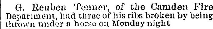 Leather helmet of natural grain believed to have been worn by Fireman Charles Baldwin, Hook & Ladder Company 1 when paid force was organized in 1869. Number 21 at bottom of frontpiece indicates member's badge number. (Courtesy of the Camden County Historical Society Collection.) |