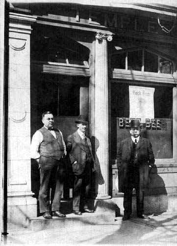 The temple theater as it appeared from 1892 though the 1920s. 409 Market Street, the old bar, is visible in the lower left hand corner of the pictures. Fire escapes on the theater are visible in the picture above of the "old" bar.