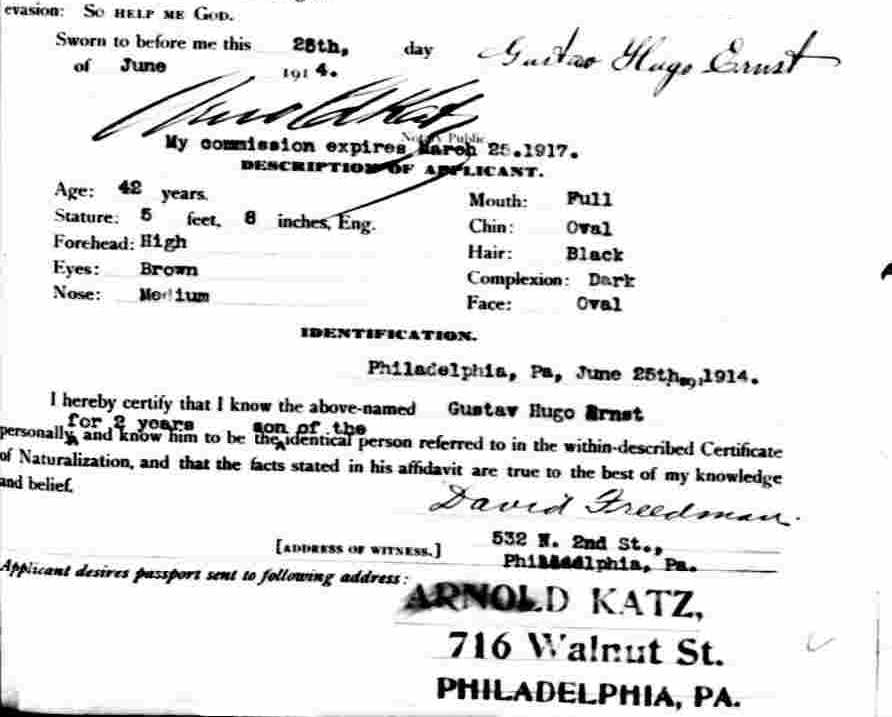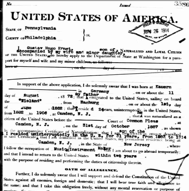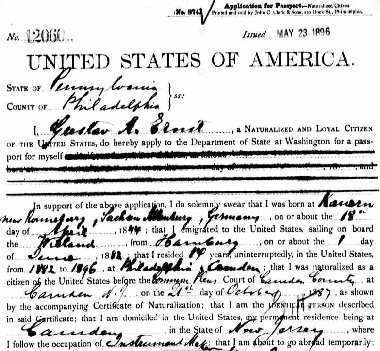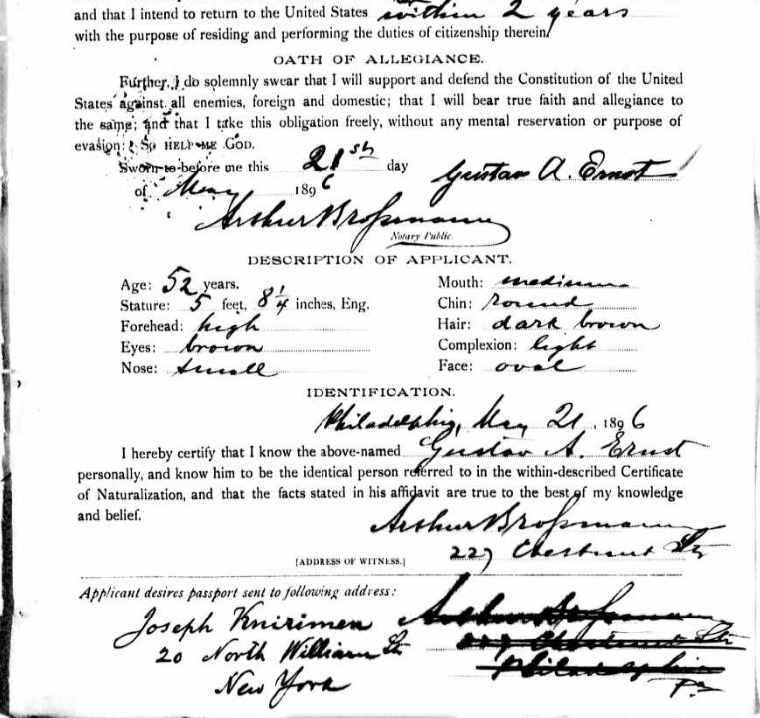 Gustav A. Ernst Passport Application - May 23, 1896 |