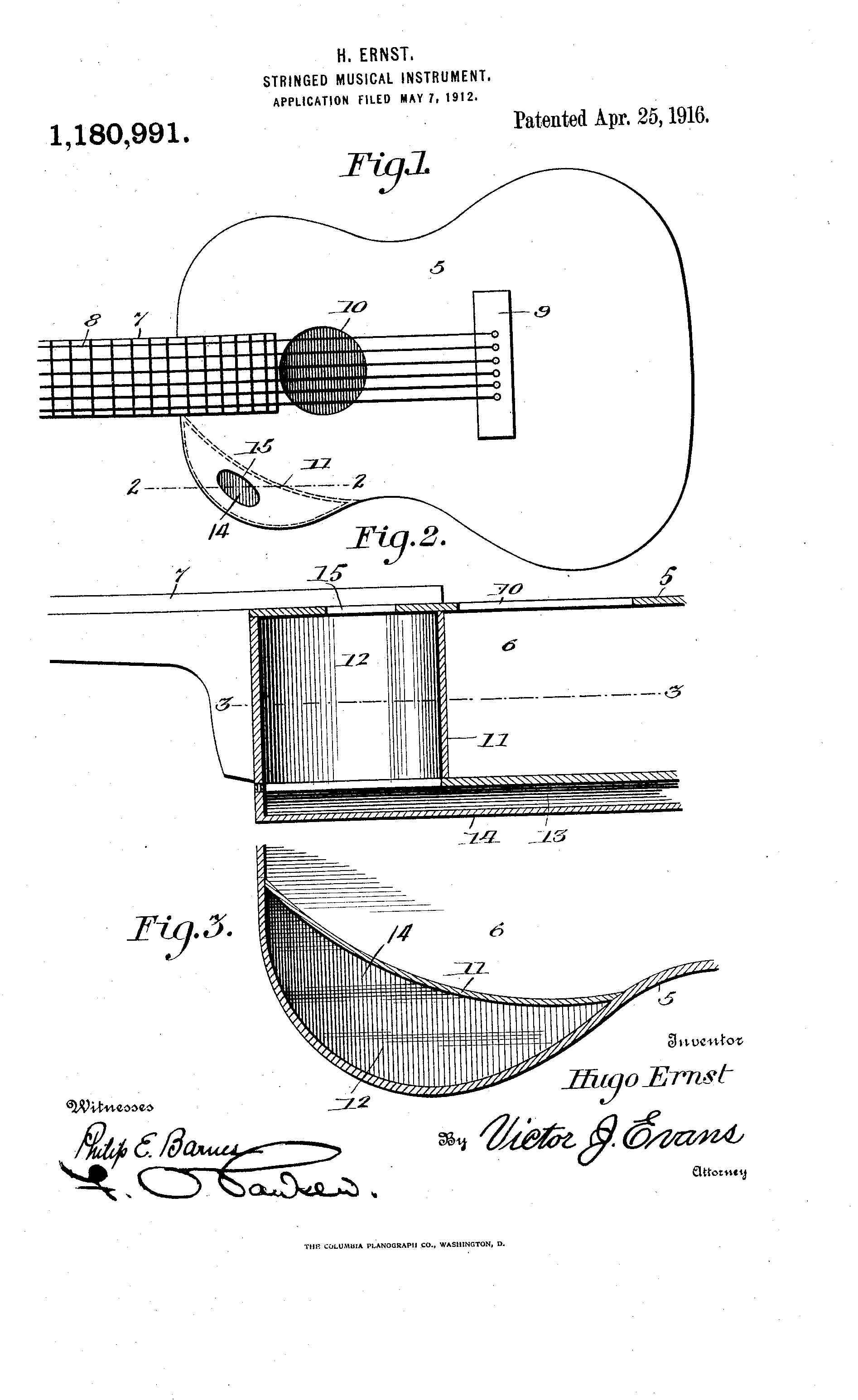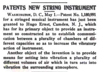 Label reads "The Ernst, double body instrument, patented April 25th 1916, guitars, mandolins, and zithers made by Hugo Ernst, 1327 Haddon Avenue, Camden NJ USA." Written in pen "No. 105" |