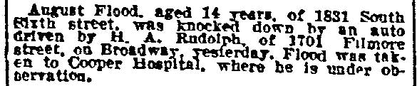 HARRY A. RUDOLPH moved to the 8th Ward of Camden NJ, the area centered on the intersection of Broadway and Ferry Avenue, in 1912. By 1920 he owned the home at 1701 Fillmore Street. He was the proprietor of a poolroom when the Census was taken in 1920. He operated a bottling business at 1811 Van Buren Street in the 1910s and 1920s. At the close of Prohibition Harry A. Rudolph opened up a liquor store at 1717-1719 Broadway, which remains open today. Well known in his community, he was noted at American Legion Post 274, a short walk from his store and home at 1701 Fillmore Street, for making a donation for the construction of the World War II War Memorial on the Post grounds shortly before his death in December of 1945. His wife Emma and sons William and Harry continued in the liquor business after his passing. |
