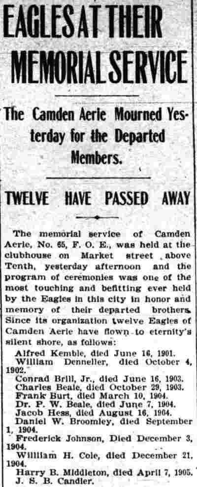 Camden Daily Courier April 20, 1905 correct address 451 S 3rd Street |