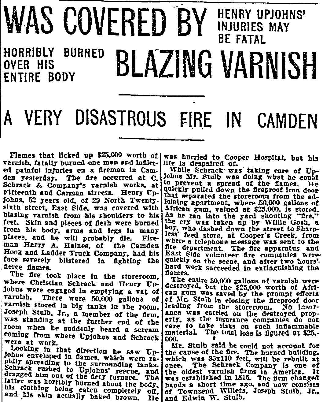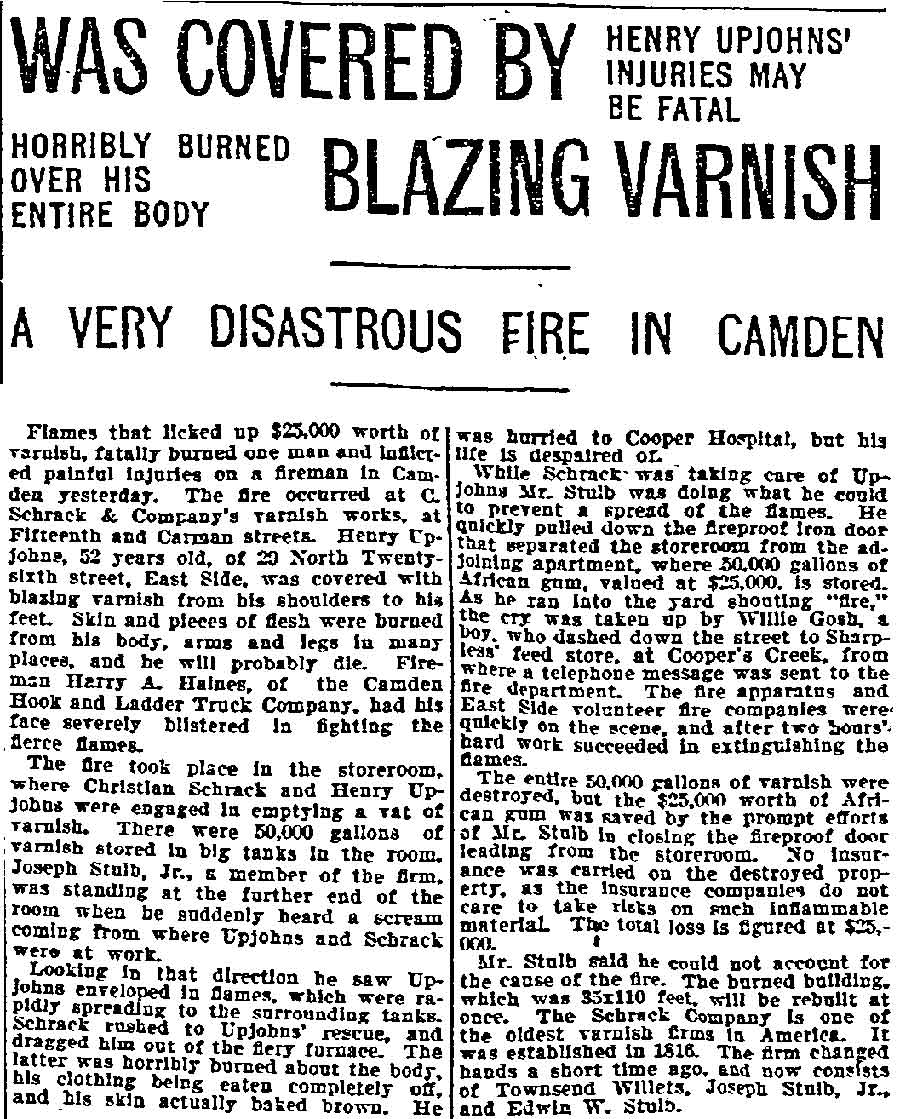 Haines Sr. Christian Schrack - Henry Upjohn - North 26th Street - John Stulb Jr. - William Gosh Townsend Willets - Joseph Stulb Jr. - Edwin W. Stulb - Casper T. Sharpless Cooper Hospital - Ladder Company 3 |
