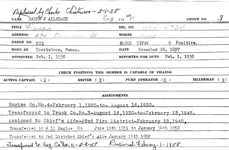 Company 3 Engine Company 9 & Ladder Company 3 - circa 1946 John Mulligan passed away on July 28, 1947 |