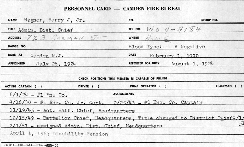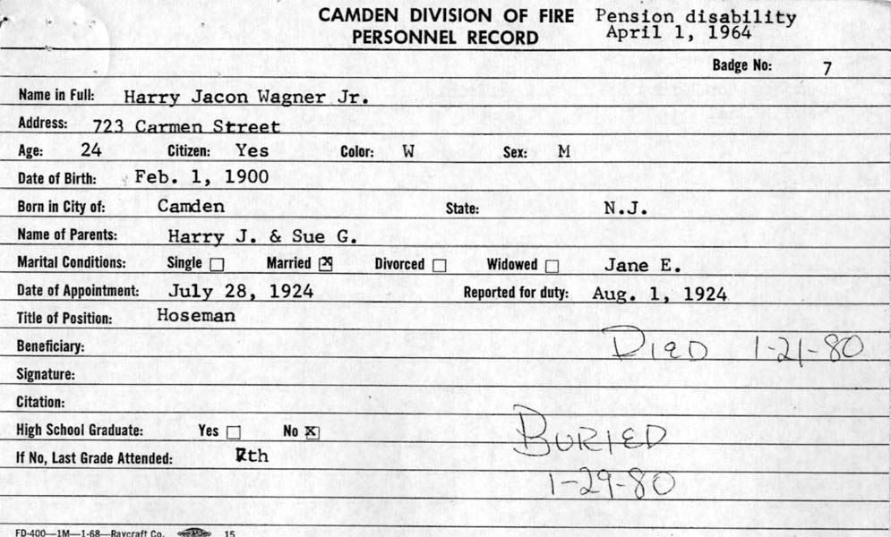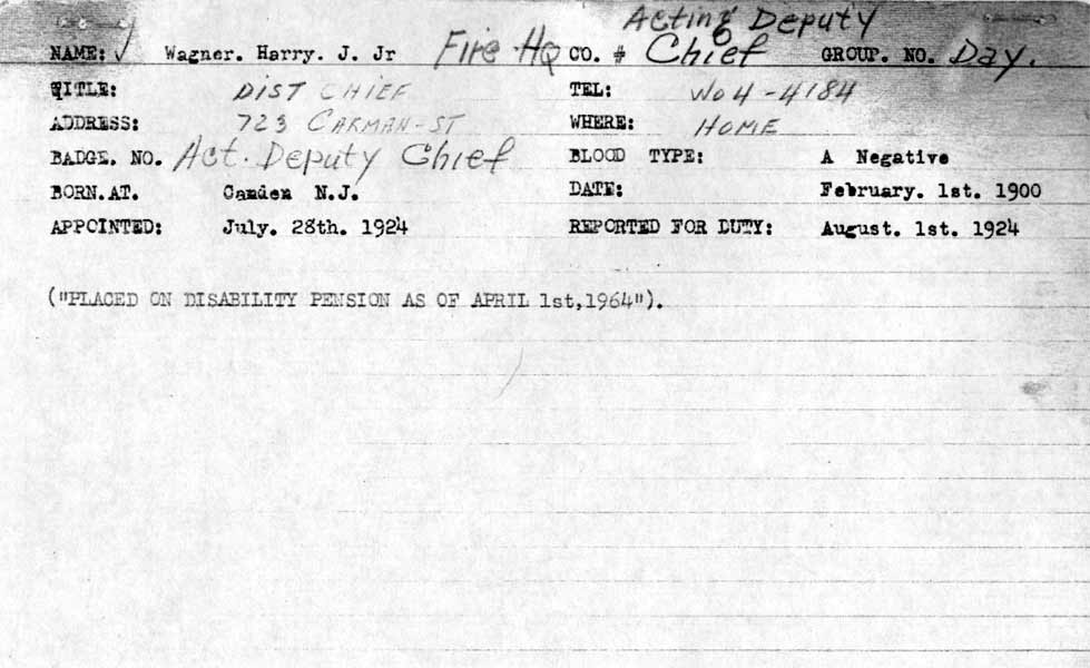 Thanks to Robin Lee Hambleton, great-niece of Harry J. Wagner Jr., and Bonnie Wagner DeAngelo, his neice for their help in creating this page. |