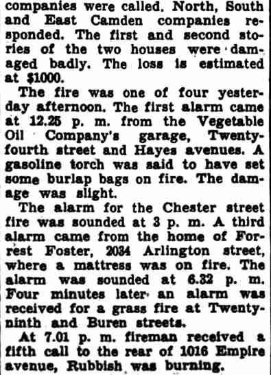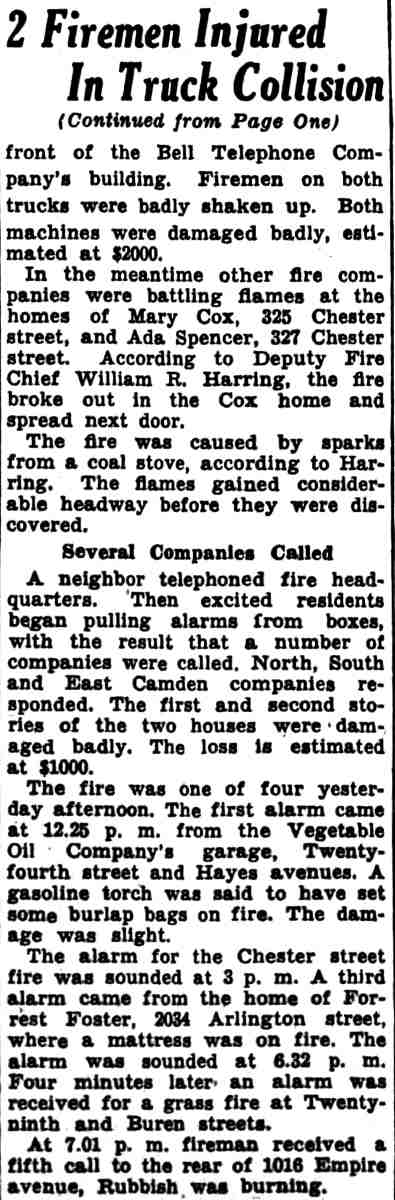 R. Harring Sr. Haddon Avenue - Federal Street - North Congress Road - Carman Street - Mulford Street Mt. Vernon Street - Chester Street - North 24th Street - Hayes Avenue - Arlington Street North 29th Street - Buren Avenue - Empire Avenue - Mary Cox - Ada Spencer Engine Company 1 - Engine Company 7 |