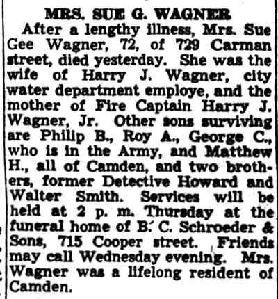 G. Smith Wagner died on July 23, 1944 after a lengthy illness,