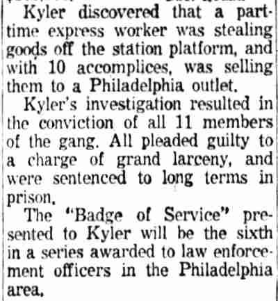 DAYS James "Jimmy" Rodgers, 28-year-old former boxer who on numerous occasions has run afoul of the law, was sentenced yesterday to serve 180 days in the county jail for operating a speakeasy at 1000 Segal Street. In addition, he was held without bail by Police Judge Pancoast on a charge of possession of stolen goods. The goods were identified by their owner, James Greer, 35, of 332 North Second Street, who was in the speakeasy when police raided it Monday night. Greer turned state's evidence against Rodgers in police court yesterday, and for a reward, received a suspended sentence. District Detective Harry Kyler, Marshall Thompson and Walter Smith raided the speakeasy and confiscated 65 pints of whiskey in bottles and a gallon of whiskey in a jug. Kyler testified Rodgers was not there when the raiders entered the place but appeared later and was arrested. 3 Others Nabbed Three others were arrested in the place. These were Greer, Thomas Spencer, 33, who gave the speakeasy as his home address, and John D. Wood, 35, of 928 Kimber street. Spencer has been arrested approximately 75 times, the police said. The detectives, when searching the premises, found a suitcase filled with shoestrings, collar buttons and other merchandise. Greer identified the case and its contents as having been stolen from his car when it was parked on Segal Street near Front some time ago. He lodged the complaint of possession of stolen goods against Rodgers. Rodgers was arraigned on three charges, including the stolen goods count. The other complaints were that he sold beer without a license and violated Section 422 of the city ordinances which prohibits disorderly persons to congregate on the premises. Rodgers pleaded not guilty on all three charges, and told the court he had "nothing to say." He was fined $200 on each of the charges of violating Section 422, and selling without a license, and when he did not pay, he was sentenced to 90 days on each of the two counts. He was committed to the county jail without bail on Greer's complaint of possession of stolen goods. Greer testified that he had purchased liquor in Rodgers' place several times, as late as last night. Greer's sentence was suspended. Spencer Refuses to Talk Spencer refused to testify against Rodgers. He said he did not know "what was going on there" and that he was there painting. "You won't be painting there for 90 days," retorted the court in pronouncing sentence. Wood, the other man arrested in the place, did not appear in court and forfeited $10 security he had posted after the raid. Rodgers has been arrested several times for operating speakeasies. He was also arrested as a material witness two years ago in the murder of William "Shooey" Bonner." Spencer was arrested so often when he resided in Gloucester that he became known as "Gloucester's Peck's Bad Boy," the police said. Since moving to Camden he has been arrested arrested nearly 50 times, police stated. The majority of his arrests have been on charges of drunkenness and disorderly conduct, but in 1925 and in 1926, he was arrested on a charge of larceny of automobile. Again in 1929 he was charged with non support, when he was ordered to pay his wife $10 weekly. Back In 1916 he was arrested on a charge of stealing a gold watch. |