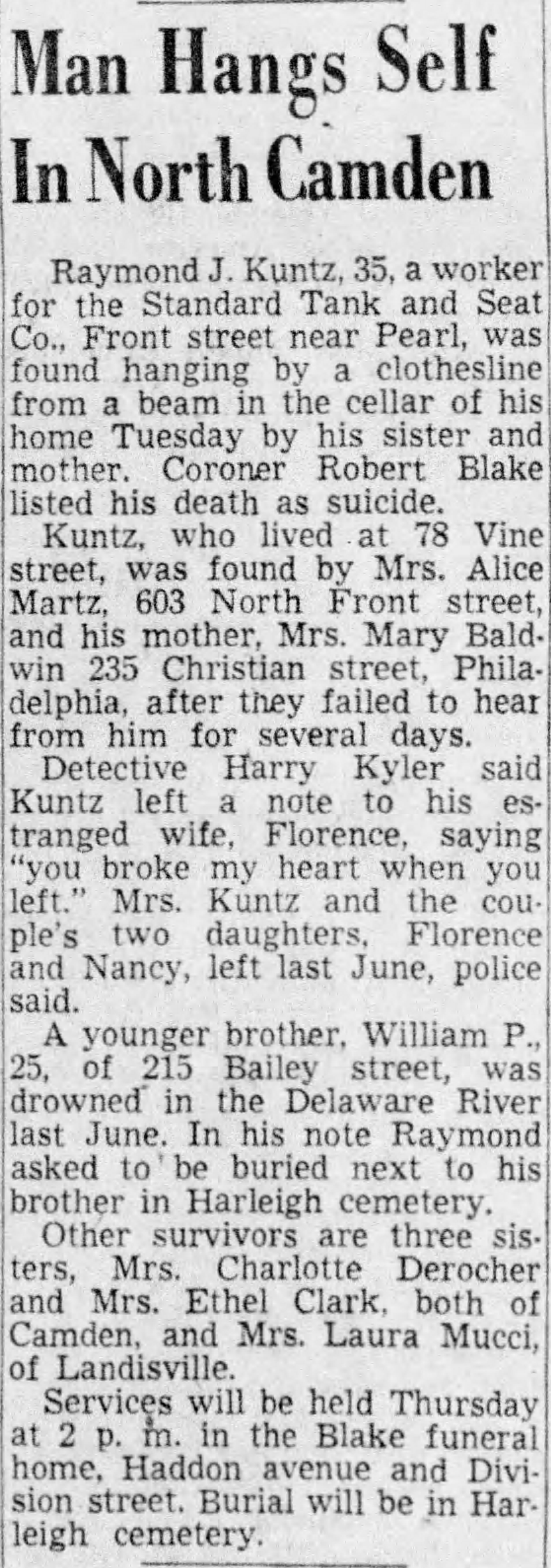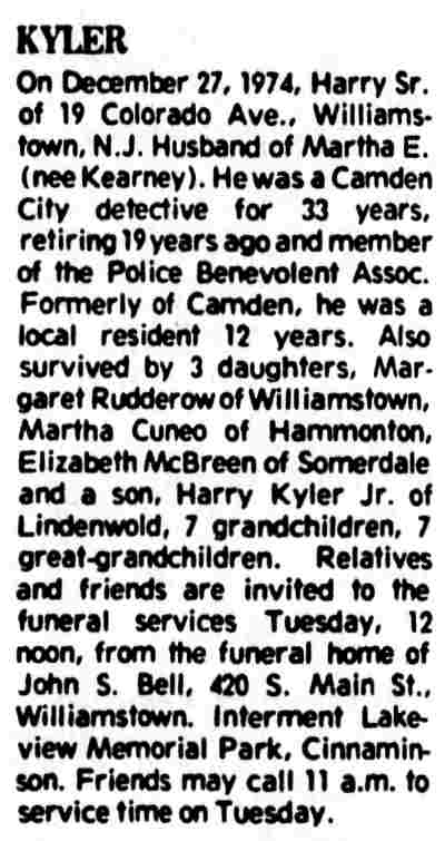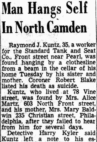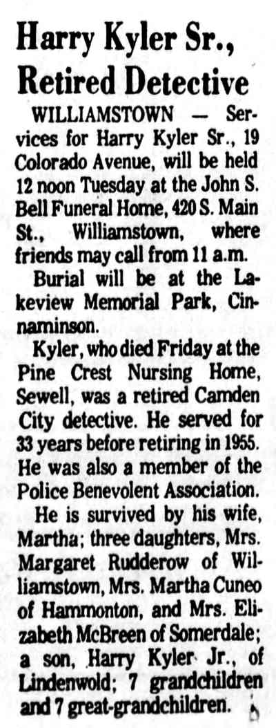 Camden Courier-Post Kerr's Chickery Frank Schubert Walter Smith John Trout Harry Kyler Tony Prucella aka Tony Basile Clinton Street Joseph Girgenti Benson Street South 4th Street Berkley Street South 6th Street |