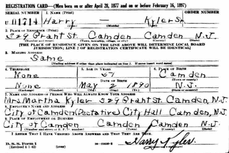 World War I Draft Card |