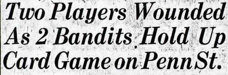 Stanley Slagle - James J. Lenahan Robert Sharp - Mary Lynch - Charles Clark - Lynch's Cafe - North Front Street Thomas Murphy - Harry Tracy - William Kelly - Oliver Morgan - John J. Hegar Harry Kyler - Vincent Conley - broadway - Federal Street - South 7th Street - John V. Wilkie Kaighn Avenue - Liberty Street - North 3rd Street |