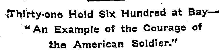 NOVEMBER 5, 1900- Barrigo, Leyte, P. I., garrisoned by detachment of the Forty-third Infantry, U. S. V., under Capt. Harry M. Dey, is attacked by insurgents and 2 enlisted men are wounded. No insurgent casualties.