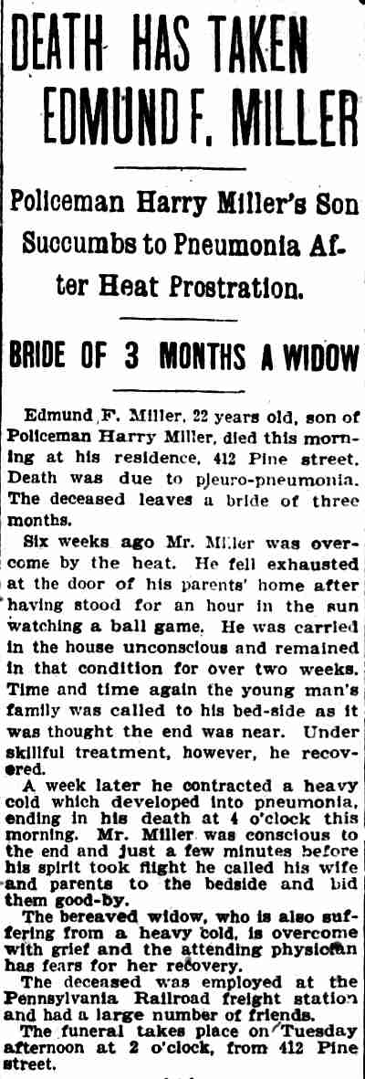 Camden Daily Courier September 10, 1904 Harry Miller Edmund F. Miller - Pine Street |