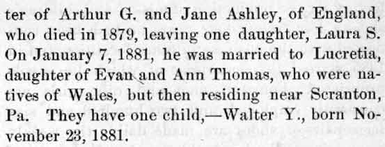 CHINA HALL, ONE of the oldest and most favorably thought of houses in this neighborhood is Anthony's China Hall, this business having been here many years, the present proprietor's son, H. B. Anthony, having established the business in 1868, and the present proprietor took hold of it January I4th, 1878. The store is about 20x80 feet in dimension. Two floors are used as show rooms. Here may be found one of the most complete stocks in the city. All kinds and descriptions of China and Glassware abound as well as a large Lamp Department, in which may be found all the newest and handsomest designs, as well as a full line of Lamp Fittings. A large House Furnishing Goods Department is also run, in which everything of the kind may be found. Six capable and genial assistants are employed. The Store is fitted with electric lights and is one of the handsomest in this section. Mr. Anthony is a native of Northumberland, Northumberland County, Pa., but has been a resident of the city thirty-five years.. |