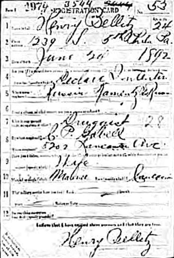 Henry Bellitz' World War I Draft Registration Card | |