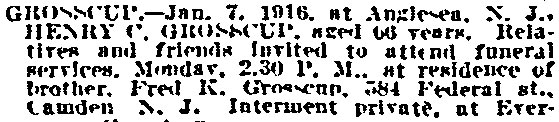 that Henry Grosscup lived at 222