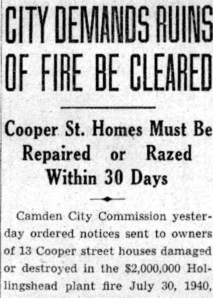 Magin - John Dziekanski - Thomas M. Madden Wildwood Avenue - John L. Morrissey - Harry Beach - David S. Rhone East Camden - John J. Crean - Mickle Street - Channing Terrace Broadway - Lester Terrace - Van Hook Street - Collings Road - Alabama Road South 2nd Street - North 5th Street - South Ninth Street - Saunders Street Everett Street - Hollingshead Fire |