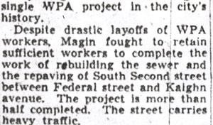 Magin and the Veterans To the Editor: At the first meeting of the Veterans' Political League since the commission election, 200 attended. The hall was packed and the league members well repaid for their attendance by the address of their league chairman, Commissioner Henry Magin. He implored them to refrain from jamming up the works by all trying to get jobs, stating the job will be given to those entitled to them. He said this will include Republicans, Democrats and voters, but that he was desirous of all veterans applying through a committee named by the chairman. This was voted on and carried. Commissioner Magin also informed all present that a promise had been made prior to election, if successful, he would reinstate all employees who were fired by Hartmann. This he said has been done. He also told us that he had placed about 20 veterans to work and that he sponsored and saw to it that Comrade Bud Hartman was placed on the Housing Authority Board at Westfield Acres. All comrades stood in silence to honor the boys who lost their lives on the U. S. S. Squalus. Commissioner Magin said he would try to give all the citizens of Camden a splendid four years and will keep every promise he made during the campaign. Addresses were made by Chairman Chuck Connors, Sergeant-at-Arms Tom Jackson, Edward Bearint, Comrades O'Brien, Harold and Hettinger. The next meeting will be held in the evening. Notices will be mailed to each comrade. Admittance by card or discharge papers. VETERANS