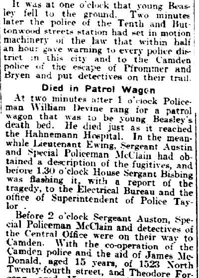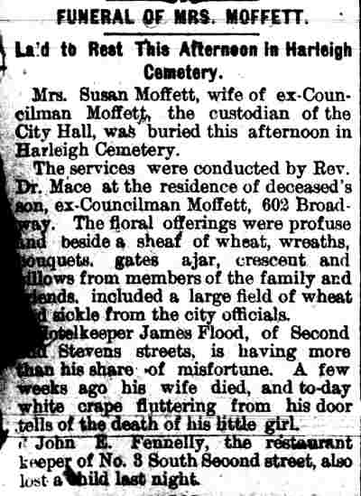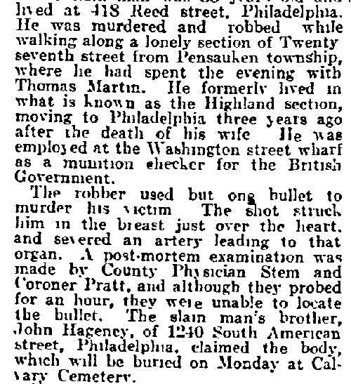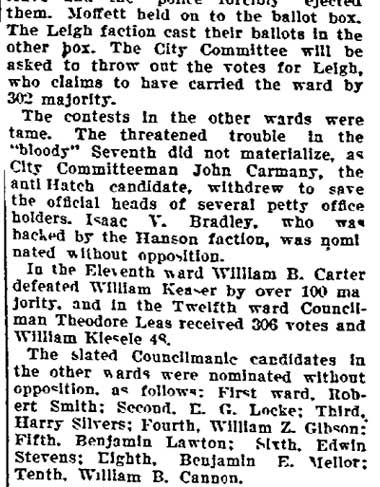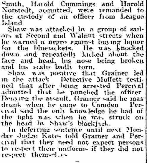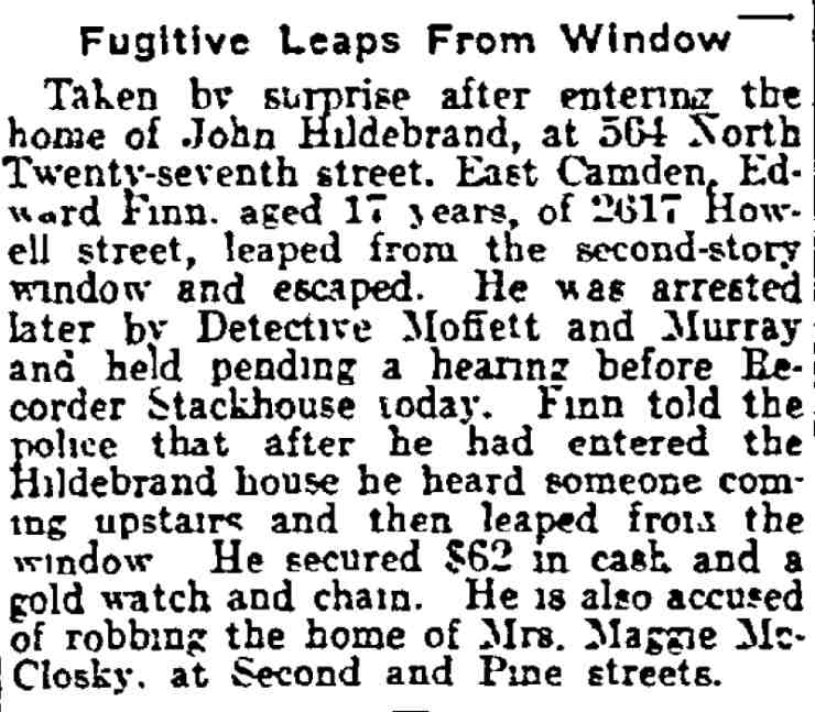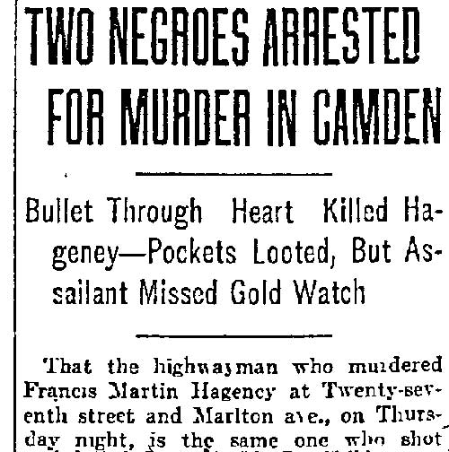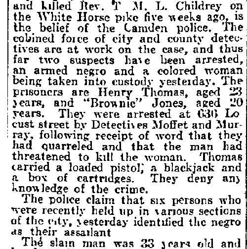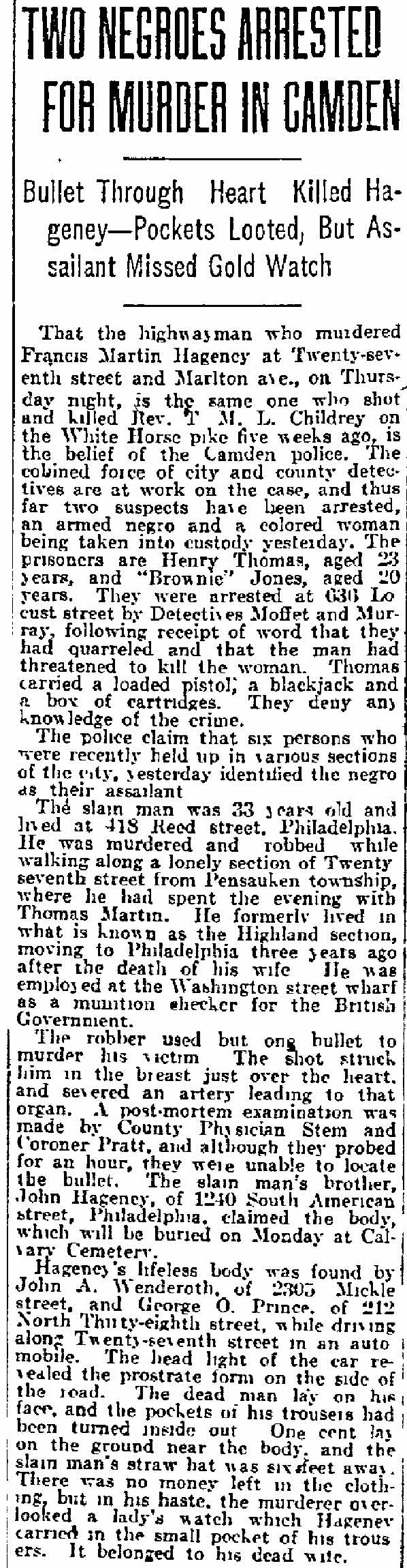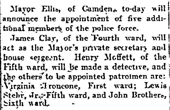Childrey Henry Thomas "Brownie" Johnson - Locust Street - Henry C. Moffett - Thomas Martin John Wenderoth - Mickle Street - North 38th Street |