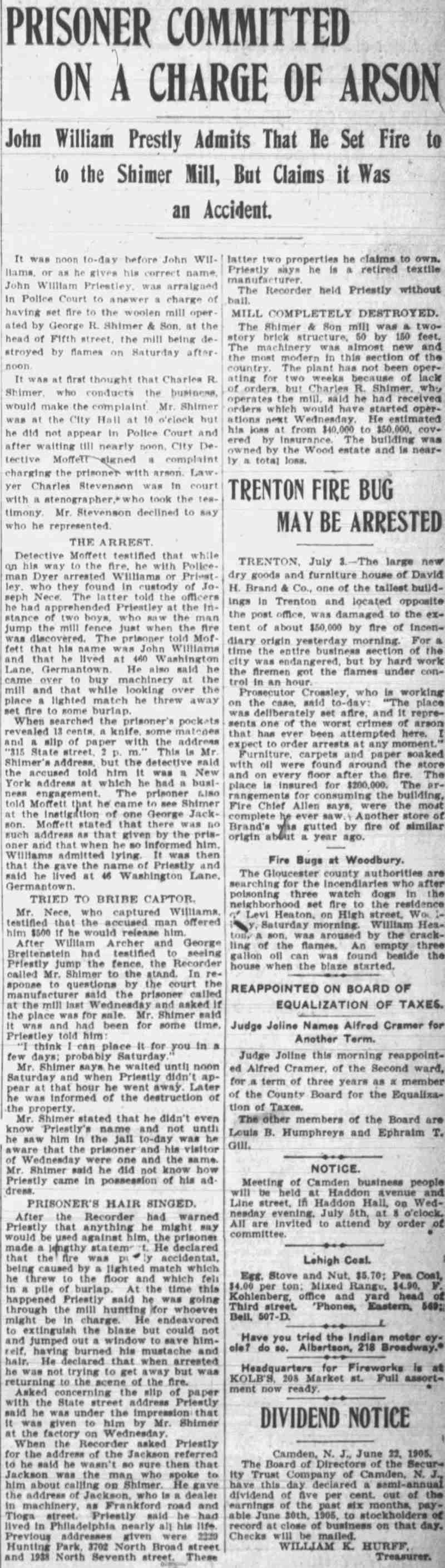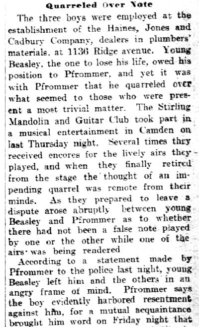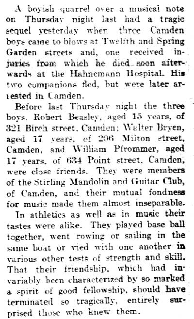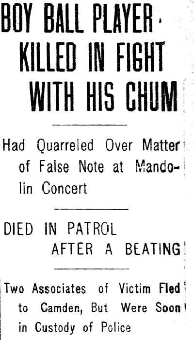 James McDonald - Theodore Forgeng Birch Street - Milton Street - Point Street - North 24th Street - North 25th Street River Avenue - State Street - Henry C. Moffett - William D. Hart - John Painter Peerless Baseball Club of Camden - Stirling Mandolin & Guitar Club North 29th Street - Garfield Avenue |