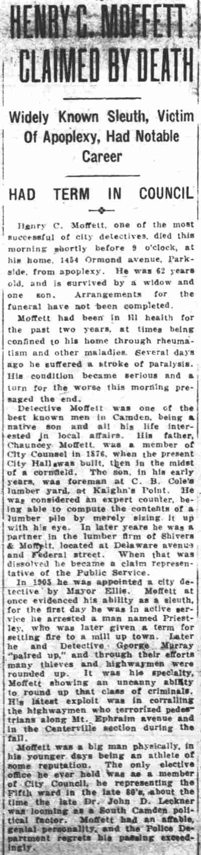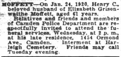 Camden Daily Courier January 27, 1920 Elizabeth Grisenwaithe Moffett |