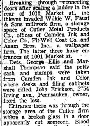 Thank you for holding the memories of Line Street for me. I'm named after my grandfather, Herman Z. Cutler, founder of Cutler Metal Products at 1025 Line Street. I remember when the main factory on Line Street didn't have every window broken like it does now. My father used to tell me about a freight train that delivered materials into a railroad siding into the factory in the 40's and 50's. When I worked there for two summers, the tracks were still visible coming from the intersection of Haddon and Line. I remember the food establishment at the three way corner there almost directly across from Fleck's front door. Good memories.