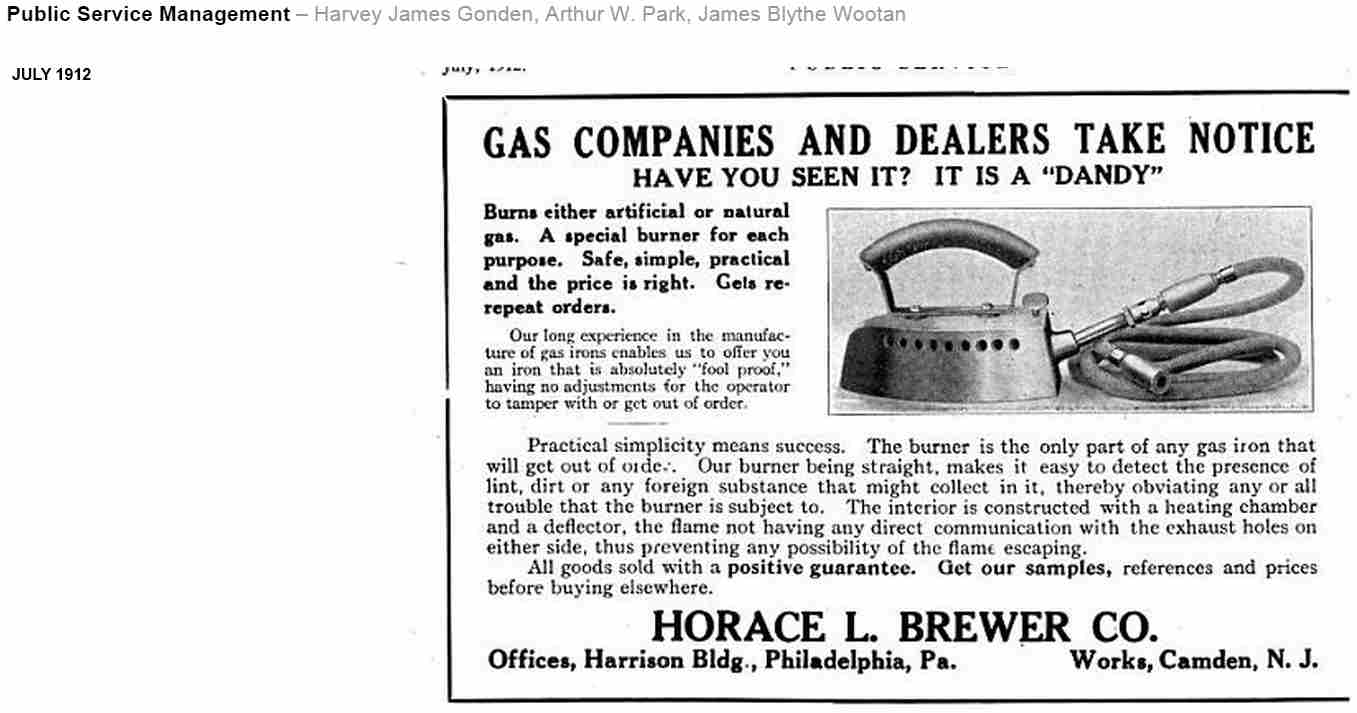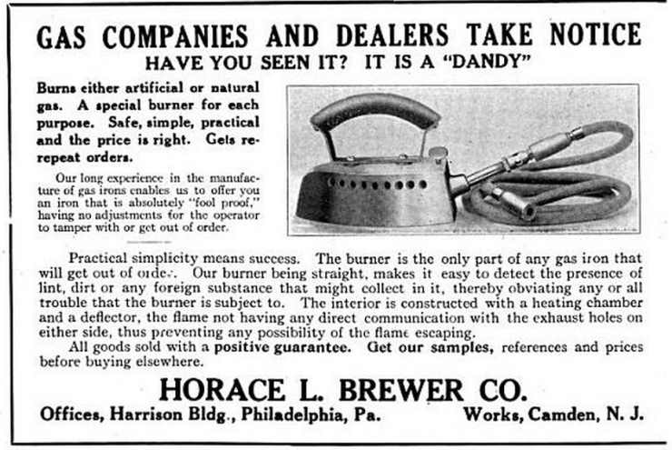 Natural gas iron, "The Imperial Gas Iron" manufactured by Horace L. Brewer and Company, Camden NJ Iron is 7 inches long |