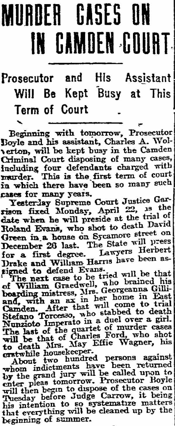 Carrow Roland Evans - Herbert Drake - William Harris - William Gradwell - Georgianna Gilliland Robert Green - Stefano Torcesso - Nunzio Imperato - Charles Ford - Effie Wagner |