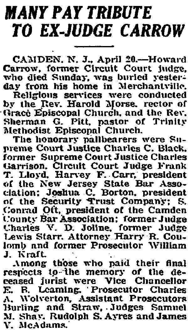 H. Ellis - Charles V.D. Joline - Edmund E. Read Harry C. Kramer - howard carrow - philander knox - james h. davidson Johm T. Dorrance - e.g.c. bleakly - David A. Henderson - Samuel W. Sparks henry c. loudenslager - francis howell - walter wood - elmer e. long George W. Jessup - Joseph Gaskill - volney g. bennett - Wilbur F. Rose Alexander C. Wood - George A. Frey - charles a. reynolds - E.B. Leaming Heulings Lippincott - Charles K. Haddon - Fithian S. Simmons - J.B. Van Sciver David Jester - Frank B. Sitley - Alpheus McCracken - Thomas S. Nekervis DeCourcy May - isaac ferris - Lionel C. Simpson - John M. Kelly G. George Browning - Watson Depuy - John C. Danenhower - John B. McFeeley Elias Davis - anthony kobus - Captain John B. Adams |
