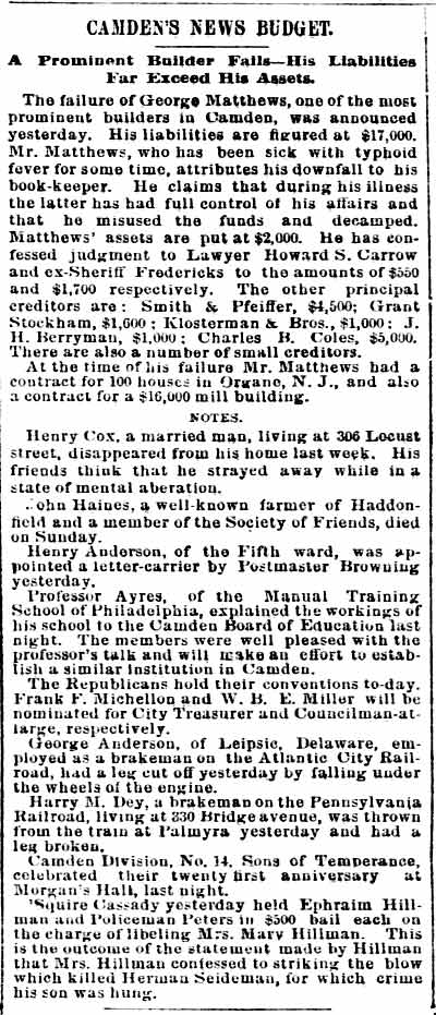 Hyde - John Painter - Albert Shaw Mrs. Mary Mahan - South Front Street |