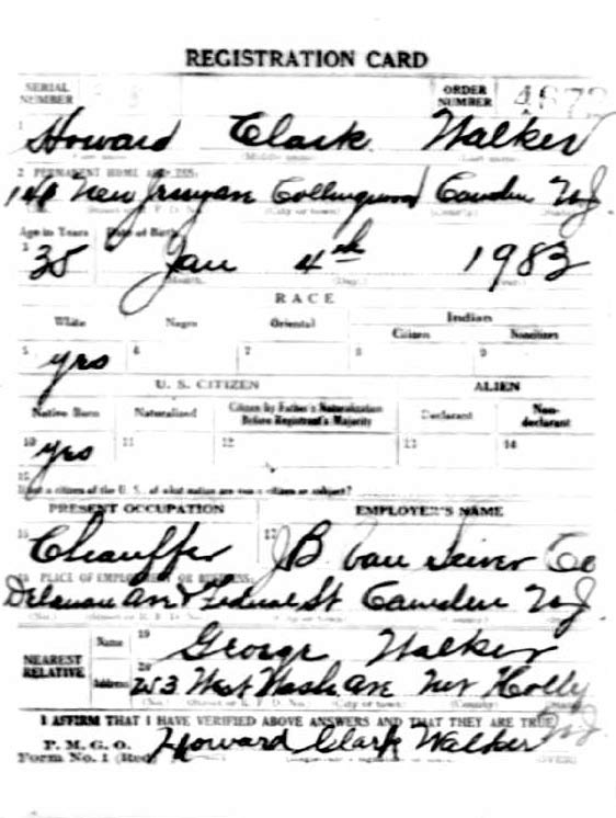 draft on September 12, 1918 Howard Walker was working for the