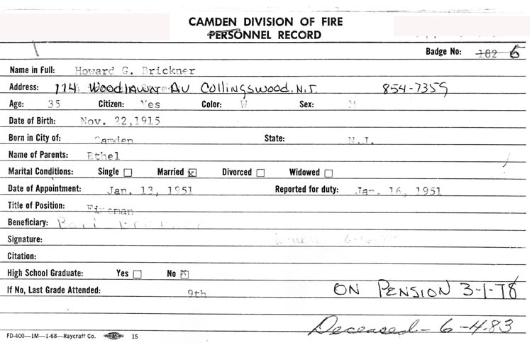 Brickner is not listed in the 1947 Camden City Directory, but he