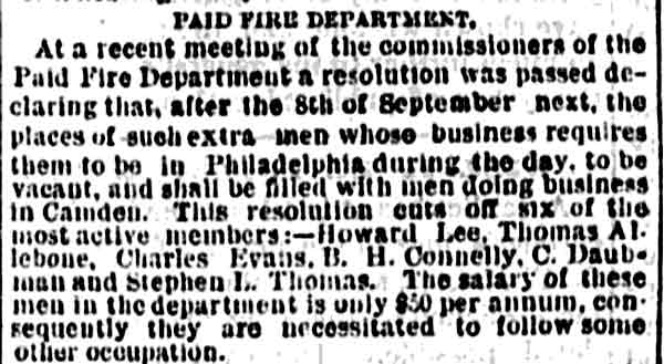 A. Bergen Isaac Githens - George Barrett - Frank Welch - Howland Croft - Samuel Bakley David Freeman Sr. - Albion Lane William Ireton - Howard Lee - Amos R. Dease Christopher Mines Jr. - john brothers - James Hewitt - John C. Edwards Malachi D. Cornish - J.Willard Somers - Frank C. Somers - John Wells - William H. Day Dilwyn Pettit - J. Milton Powell - George Denny - Everett Ackley - Samuel M. Gaul Joseph Brown - Frederick Parker - John H. Milton - David Rankin - Samuel Roach James Brown - Isaac Robinson - William K. Price - Reuben Gaskill John W. Everman - Samuel H. Mourey - William H. Smith Herman Heimbold - Thomas Watson - E. Thompson |