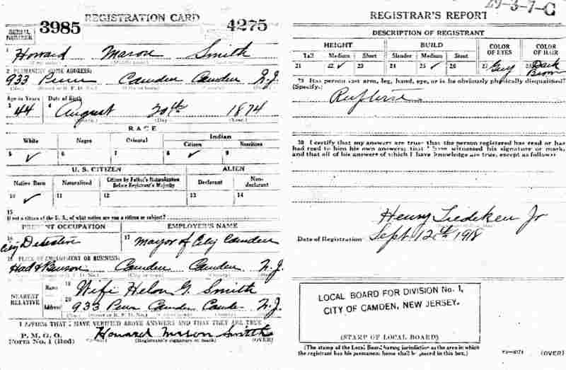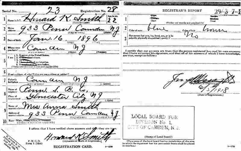 Howard M. Smith - World War I Draft Card - September 12, 1918 |