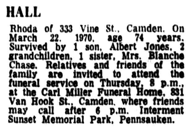 Courier-Post June 16, 1966 Rhoda Hall |