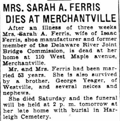 Patrons, Patronesses Announced Today for First Military Ball Patrons and patronesses for the first military ball of the Camden Post No. 980, Veterans of Foreign Wars, to be held on Friday evening February 3 in the Elks auditorium, seventh and Cooper Streets . , are announced today. The following prominent men and women are listed: Mrs. J.W. Connor, Miss C.M. Day, Mrs. J.H. Forsyth, Mrs. H.J. Goodyear, Miss B. Graham, Mrs. R.E. Green, Mrs. E.F. Haines, Mrs. J. Hood Jr., Mrs. W. Hurley, Mrs. J. Jarrell, Mrs. T. Keefe, Mrs. J.F. Kobus, Mrs.L. Liberman, Mrs. F.T. Lloyd, Mrs. M.A. Logan, Mrs. T.P. McConaghy, Mrs. F.F. Neutze, Mrs. L.K. Marr, Mrs. J.A. Pennington, Mrs. M.E. Ramsey, Mrs. E. Truax, Mrs. S.M. Shay, Mrs. W.J. Staats, Mrs. B.G. Tarburton, Mrs. R.W. Waddell, Mrs. E. Watson, Mrs. E.P. Wescott, Mrs. C.A. Wolverton. David Baird Jr., William T. Boyle, isaac ferris, William Hurley, John Hood Jr., John Jarrell, Victor King, William J. Kraft, Thomas Keefe, Joseph F. Kobus, Hon. Edmund B. Leaming, Dr. A. Haines Lippincott, James H. Long, L.K. Marr, Dr. Thomas P. McConaghy, Hon. Frank F. Neutze, Samuel P. Orlando, Albert E. Simmons, Edwin Watson, Ethan P. Wescott. |