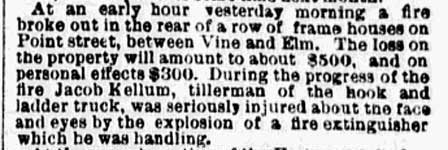JACOB KELLUM was born in Camden county, New Jersey on March 21, 1851 to Benjamin Kellum and his wife, the former Emeline Ware. He was one of at least three children, coming after Anna and Benjamin L. Kellum. His father appears to have passed away in the 1850s, and his mother was remarried on May 3, 1861, to John Bodine, with whom she had at least 5 children, Sarah, Samuel, David, Charles, and Harry prior to the 1860 Census. The census shows John and Emeline Bodine living in what was then Newton Township with the three Kellum children and the the three younger children who had been born to date. John Bodine supported his family as a day laborer. Older brother Benjamin Kellum enlisted in the Union Army in 1864, and re-enlisted in 1866 for three years, returning to Camden in 1869. The 1870 Census shows Jacob Kellum living with his mother, step-father, and siblings in Camden's Middle Ward. His stepfather was working in a store, while Jacob and older brother Benjamin Kellum worked as laborers. Jacob Kellum was appointed to the Camden Fire Department to take the place of George Leibecke, driver of Engine Company 2, who had been transferred to Engine Company 1 on August 1, 1871. His brother Benjamin joined the Camden Fire Department in May of 1874. Both men would remain Camden fire fighters for the rest of their working days. The 1878-1878 and 1879-1880 City Directories give Benjamin Kellum's address as 122 West Street. The