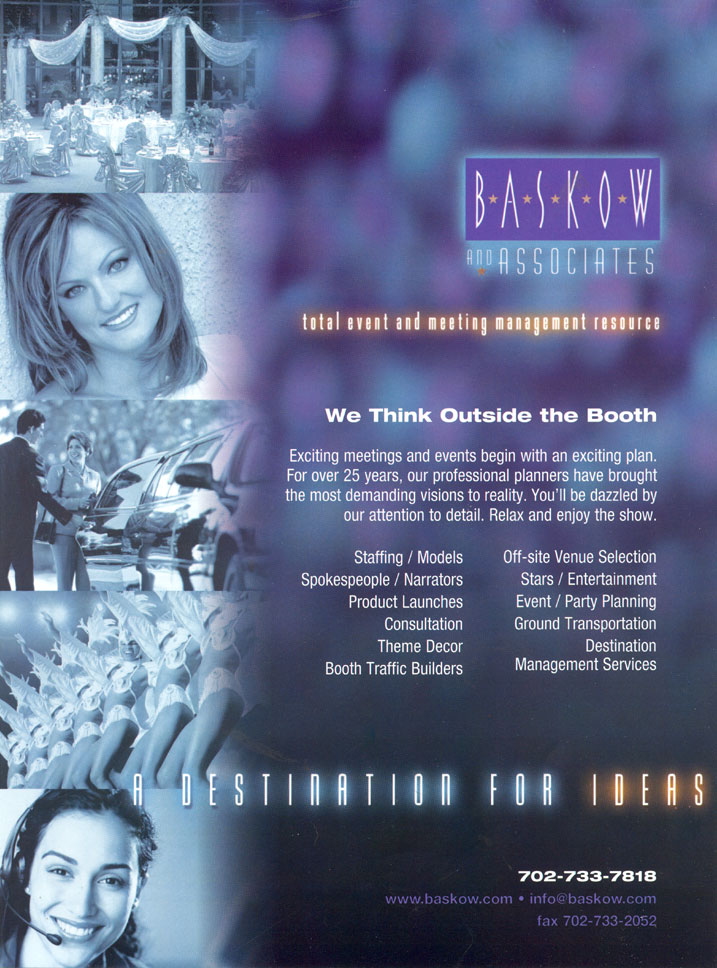 She went from being a one-woman show called the Baskow Agency in 1976 to having the largest destination management/enter-tainment agency in the state of Nevada today, now called Baskow and Associates. Along with it, her company now boasts 28 employees and 14 divisions. The honors have come, too - along with being named one of the Top 10 Starbrokers in the world and recently being nominated for "Entrepreneur of the Year" by Ernst and Young, Baskow was featured this past year on the Discovery Channel and the Travel Channel.