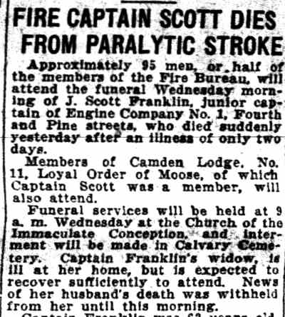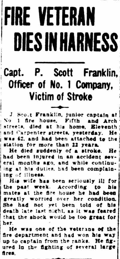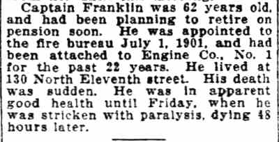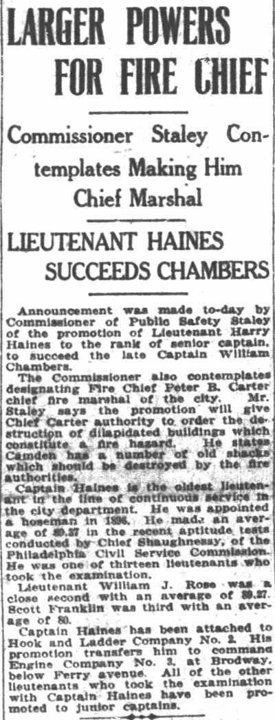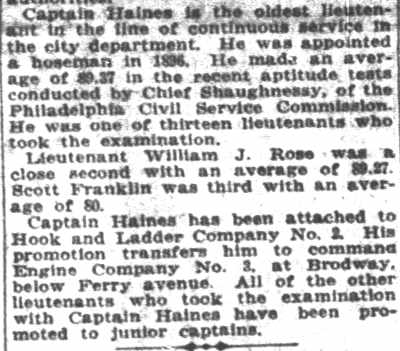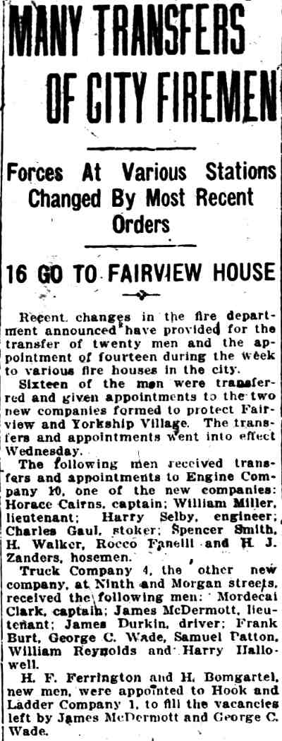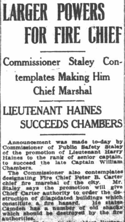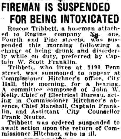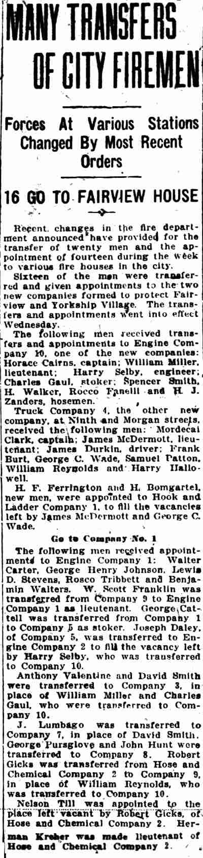 Company 4 as a driver. By 1923 he had left the Fire Department and moved to