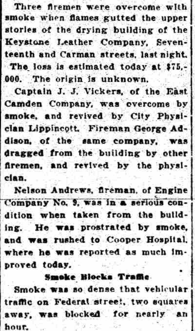 Gloucester City in the 1930s. James Durkin's son, James A. Durkin, served for 35 years with the Gloucester City Fire Department, rising to the rank of Chief of Department in 1961. He retired in 1974. |