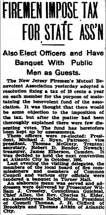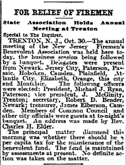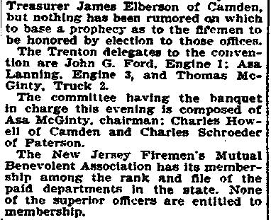 Elberson was appointed to the Camden Fire Department in 1893,