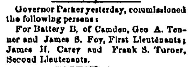 WILLIAM B. HATCH POST No. 37, of Camden, was instituted and chartered November 25, 1879, with eighty-one members and the following named Post officers: Post Commander, John E. Grubb; Senior Vice-Commander, Richard J. Robertson; Junior Vice-Commander, Daniel J. Fullen; Surgeon, Thomas G. Rowand, M.D.; Chaplain, John Quick; Officer of the Day, John A. Dall; Officer of the Guard, Edmund G. Jackson, Jr.; Quartermaster, Christopher J. Mines, Jr.; Adjutant, Benjamin J. Pierce; Sergeant-Major, William A.Tattern; Quartermaster-Sergeant, William B. E. Miller. At the first meeting of the Post it was decided by a unanimous vote to name it in honor of the late Colonel William B. Hatch, of the Fourth Regiment. When Mrs. C. Hatch, the mother of the colonel was informed that the post had honored the memory of her son by naming it after him, she sent to the Post the following response : |