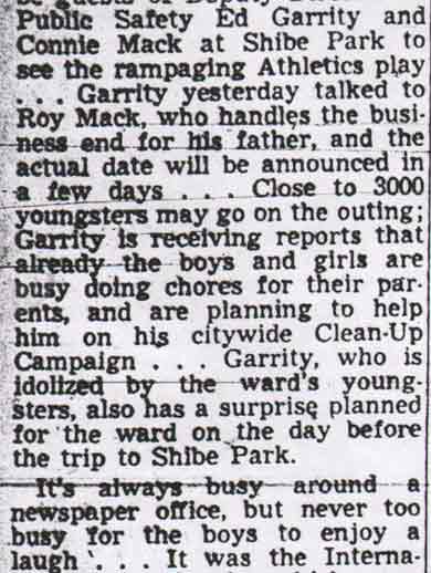 IT MAY be true in more than one South Jersey town, but we have a particular community in mind as we write this. There is a certain chief of police who for some reason or other chooses to belittle the activities of one of his cops. The chief would make no record of many of that policeman's reports, we are told, and would not tell reporters of anything done by that bluecoat, although the latter is the most active one on the force. That cop is the only one in that department who will give the reporters an even break, which is all that they ask. The chief doesn't want the newspapers, or the taxpayers for that matter, to know everything that happens in his department. The reporters know almost everything, or think they do, even if one of the chief's pals, when asked the other night if there was anything along the news line, replied, "There's nothin' doin', an' even if there was, I wouldn't give it to yuh." "Maybe the taxpayers will also know a few things soon. Certainly the town fathers have gotten wise to some extent, so they took the chief to task. Now you should see the police docket, beautifully decorated with stickers between the old entries. The stickers contain accounts of ac-tivities of that cop who is in disfavor with his chief. * * * You'll get a laugh from this. Although we didn't, we wouldn't. Louella Parsons, movie writer, recently noted on this theatrical page that it is curtains for gang pictures, because the Motion Picture Producers and Distributors of America agreed to cooperate with the parent-teacher associations in ceasing to glorify the racketeer and kindred gentlemen. And so, says Mrs. Parsons, "Tiffany, which has just started on a picture called 'X Marks the Spot,' stopped production and changed the story into a newspaper yarn." And there will be those of you who will ask why any change had to be made. Is our face red or is our face red? OFFICER John V. Wilkie forwards this one to us. He says that his curiosity was aroused by a man who walks along the curb on the east side of Admiral Wilson Boulevard, going south, every morning and some time later, can be seen walking north on the west side. Wilkie questioned him one morning, asking him if he was a motor vehicle inspector. The man replied he wasn't. Upon further questioning, it developed that every morning he starts at Penn and Linden streets, goes as far as the circle at White Horse Pike and Crescent Boulevard and returns to his starting point. "I find nickels and dimes," he continued. "Sometimes I find quarters lying in the gutters. The highest I ever found was a $5 bill. But I find something every morning." It may or it may not please you who work hard and lose that money, to learn that this gentleman has not worked for three years! * * * What do you want to bet that Admiral Wilson Boulevard won't be con-gested with pedestrians tomorrow morning? … A Hightstown reader, R. W., sends us a clipping from a Muskogee, Oklahoma paper, because he is an admirer of “Pepper" Martin, World Series hero … The item pictures Martin as a Huckleberry Finn of the sandlots, having played ball garbed only in overalls when a kid … The clipping also declares that Martin played football with a commercial league team … In fact, he played too good, and a claim of ineligibility was filed against him and sustained … To get him out of the way, one presumes….If only the A's could have done that…. Although Harry Weir says that he saw Martin in Rochester and the youngster didn't look like big-league material then….. How things change in a year or so. Not only did he become big-tent stuff, but he was transformed into the most sensational player any World Series ever saw … Saturday last was a headache in more than one instance … Not only did the Mackmen lose, but Notre Dame was held to a scoreless tie by the powerful Northwestern outfit, though that is no disgrace … Navy, Princeton and Yale took the count, while Atlantic City, … conquerors of the champion Vineland eleven, took it on the chin from Collingswood … ,It appears that there will be another classic between Collingswood and Camden … The two are traditional rivals, and you can throw past records to the winds when they meet, whether on gridiron, diamond or court … But if Vineland beats the Colls, the Class A football race will be in an awful mess … Which is about what will happen. |