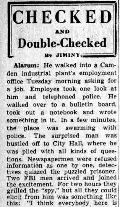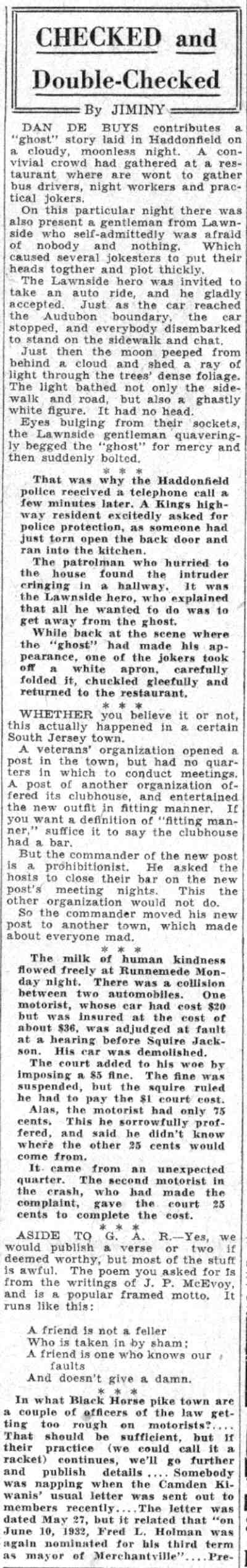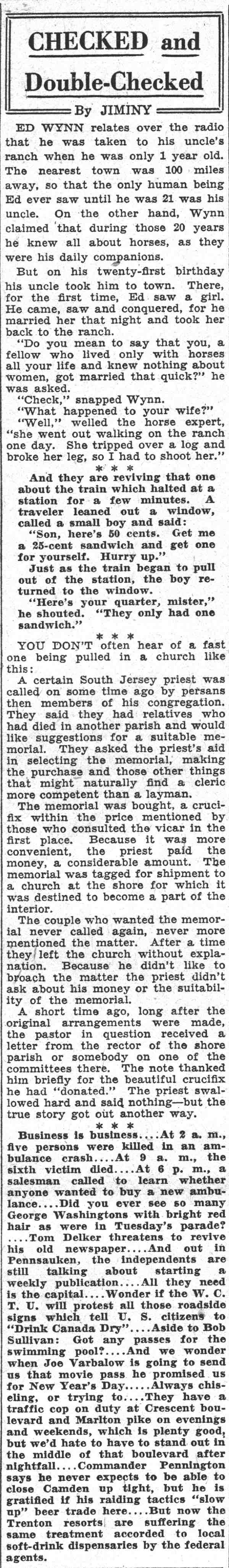 Courier-Post * February 26, 1938 CHECKED AND DOUBLE CHECKED by JIMINY |