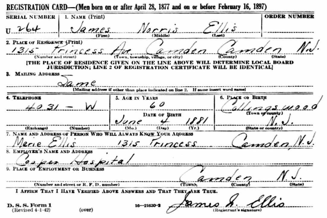 NORRIS ELLIS was born in what is now Collingswood, New Jersey on